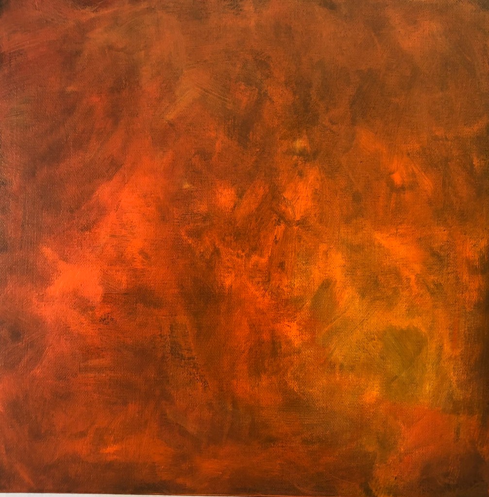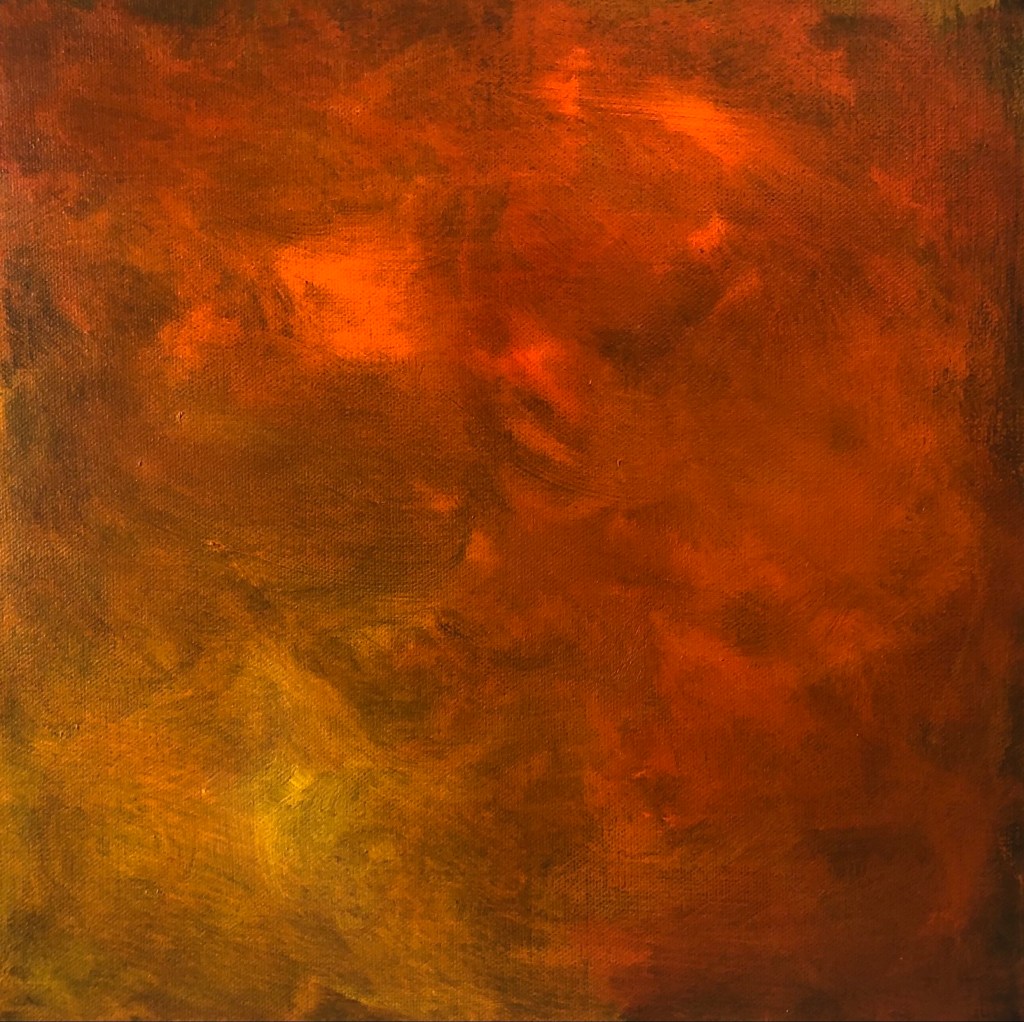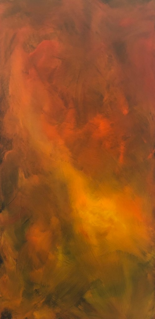 In 2020 and 2021, The Williamston Theatre’s The Fire Tour project provided the impetus to research and perseverate on fire. This year-long painting project resulted in the works submitted for this application. In addition to research via photography, I spent time viewing fire in a number of physical manifestations, including campfires, fireplaces, brush burning, and more. Special thanks to the Arts Council of Greater Lansing for grant support. Selected works are included below.